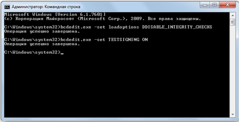 bcdedit.exe -set loadoptions DDISABLE_INTEGRITY_CHECKS